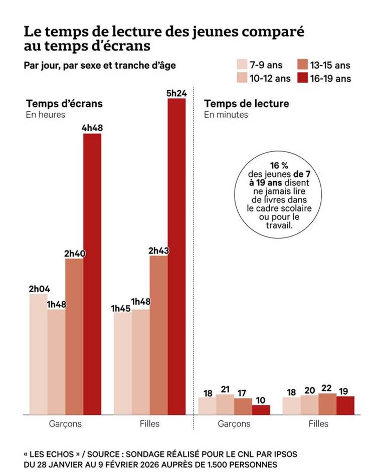 L’effondrement de la lecture chez les jeunes se confirme et s’approfondit. Deux ans après avoir tiré la sonnette d’alarme, le Centre national du livre (CNL) publie les résultats de sa nouvelle étude révélés par « Les Echos » sur ce phénomène accablant et lié tout particulièrement à la dépendance accrue des jeunes aux écrans.